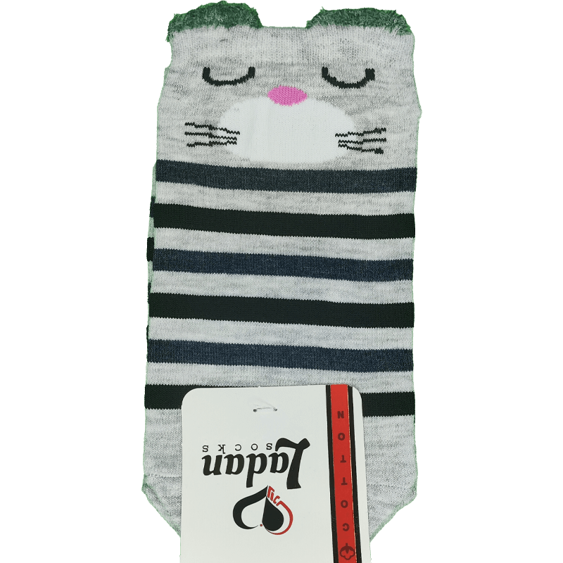 جوراب قوزکی زنانه نخی طرح خط دار گوش دار